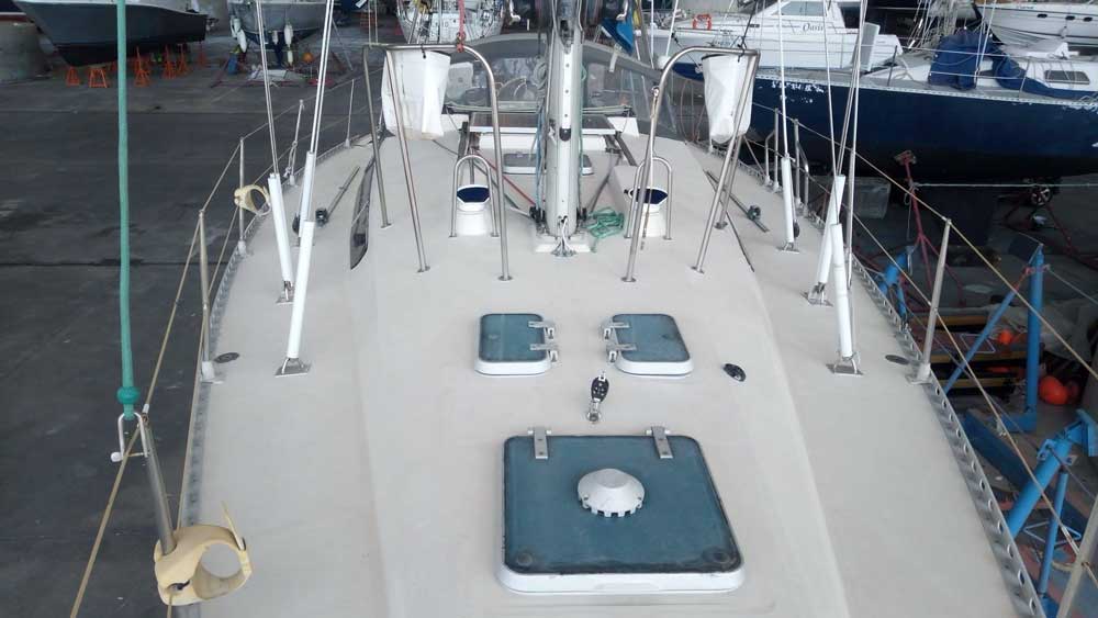 Ce voilier Quille fixe, gréé en Sloop en tête, réalisé par l’architecte naval Joubert & Nivelt est un véritable 4*4 des mers dont la notoriété a fait ses preuves .